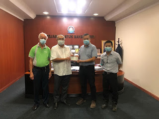美里市長俞小珊(左2)移交款項予培民中學,由董事長許為隆(右2)代表接領,並由董事財政吳啟平(右)與董事傅楚旺(左)陪同。